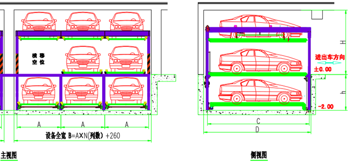 帶基坑三層升降橫移 運行原理 該設(shè)備的頂層載車板可上下升降;基坑層載車板可上下升降;地面層載車板做橫移,地面層留有一個空位,可以通過橫移載車板變換空位,使空位正上或下方的載車板下降或上升到地面層。地